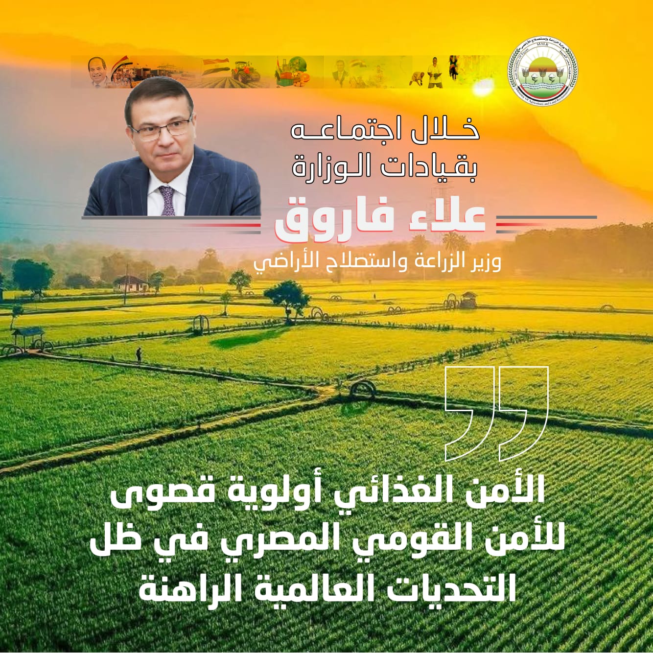 “فاروق” يوجه بإعادة تشغيل المشروعات المتوقفة ودعم كامل للفلاح والمصدرين وتطوير المعاهد البحثية والتوسع في منافذ السلع وزير الزراعة يشدد.