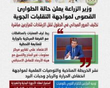 “الزراعة” تصدر 5 توصيات هامة وعاجلة لتجنب الآثار السلبية للموجة الطارئة كتب فتحي السايح أصدر علاء فاروق وزير الزراعة واستصلاح.