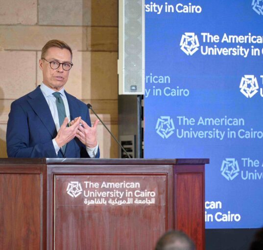 رئيس فنلندا يتناول التحولات في ديناميكيات القوة العالمية بالجامعة الأمريكية بالقاهرة