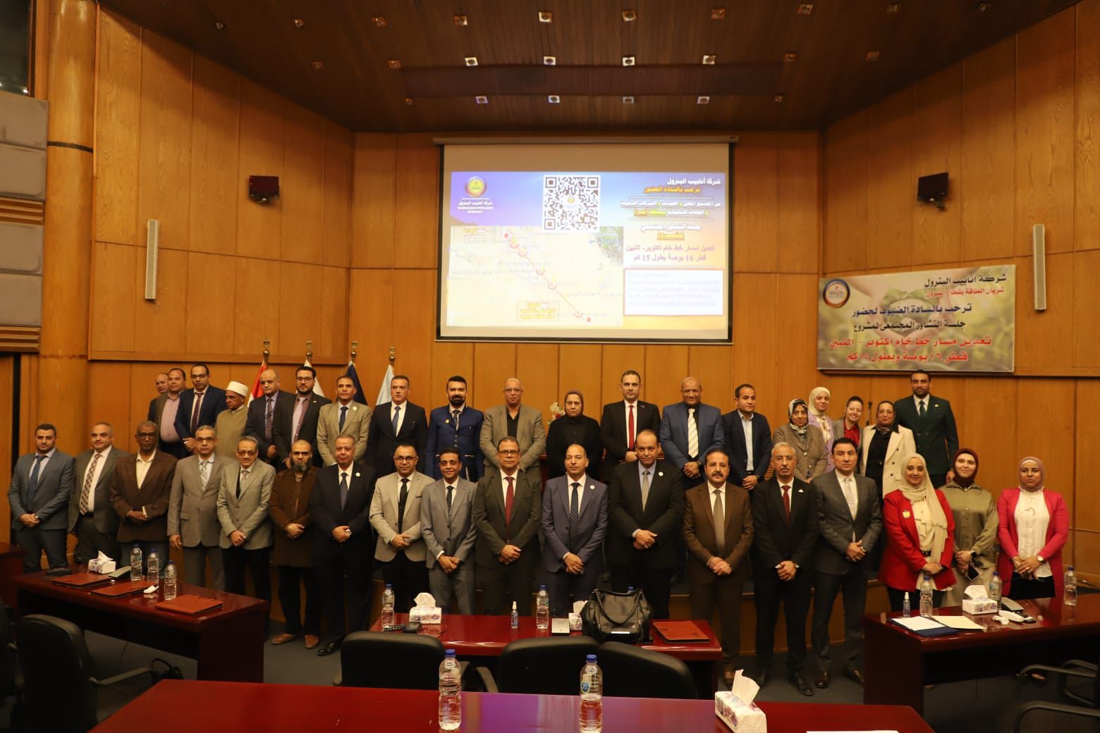 وتضمن برنامج الجلسة عروضًا فنية متخصصة، حيث قدم المهندس أحمد قنديل، مدير عام مساعد المكتب الهندسي، عرضًا حول وصف المشروع وأهدافه وآليات تنفيذه باستخدام تقنيات الحفر الأفقي الموجَّه وأنظمة الحماية الكاثودية، فيما أوضح الكيميائي محمد عبد المنعم، مدير عام مساعد حماية البيئة بشركة بتروسيف، تصنيف دراسة الأثر البيئي ومنهجيتها وبدائل المشروع وسلبياتها.
