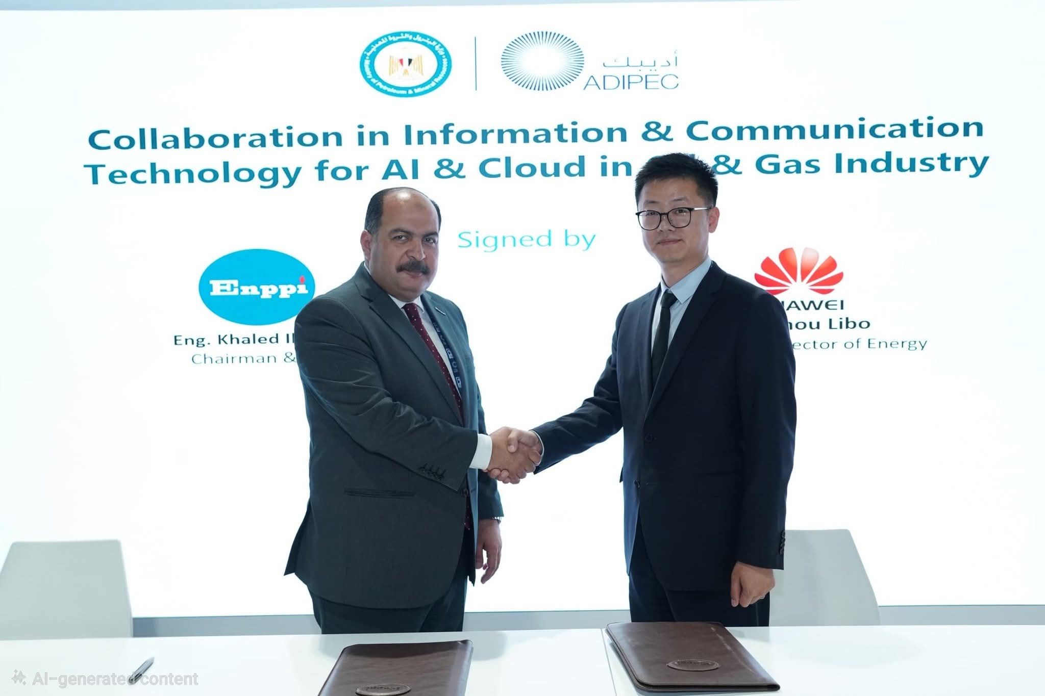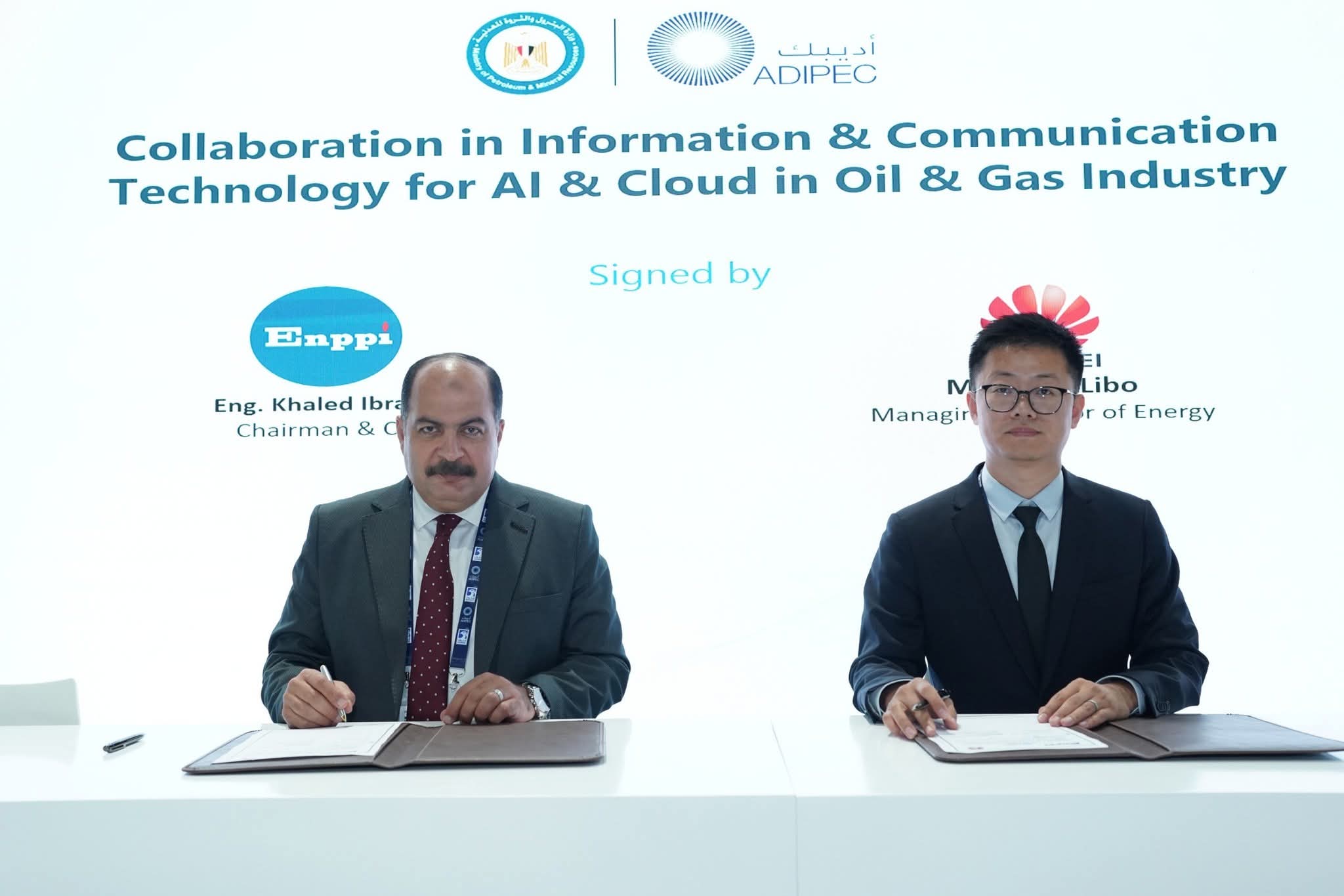 وقّع مذكرة التفاهم المهندس خالد إبراهيم، رئيس مجلس الإدارة والعضو المنتدب لشركة إنــبي، والسيد چو ليبو، المدير العام لقطاع الطاقة بشركة هواوي.
