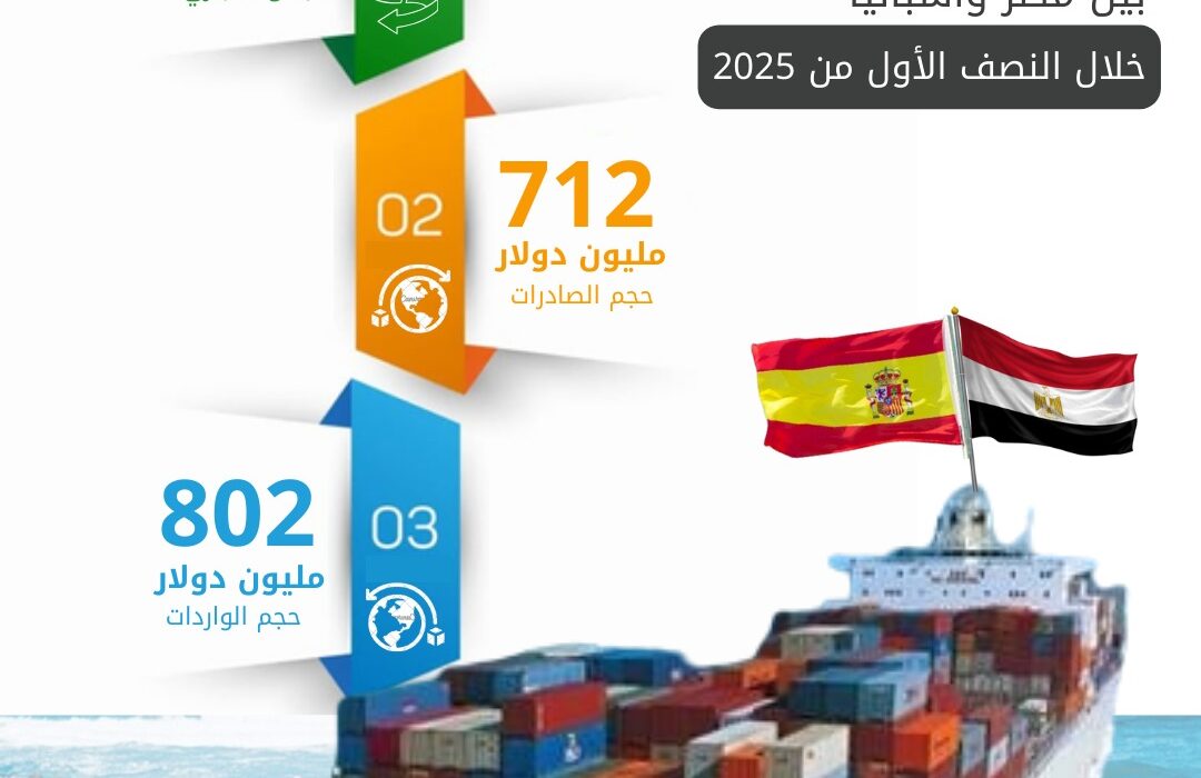 الإحصاء : 1.5 مليار دولار قيمة التبادل التجاري بين مصر وإسبانيا خلال النصف الأول من عام 2025