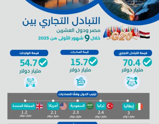 كما أظهرت بيانات الجهاز عن ارتفاع قيمة التبادل التجاري بين مصر والإمارات لتصل إلى 4.8 مليار دولار خلال النصف الأول من عام 2025 مقابل 2.7 مليار دولار خلال نفس الفترة من عام 2024 بنسبة ارتفاع قدرها 77.7 % .