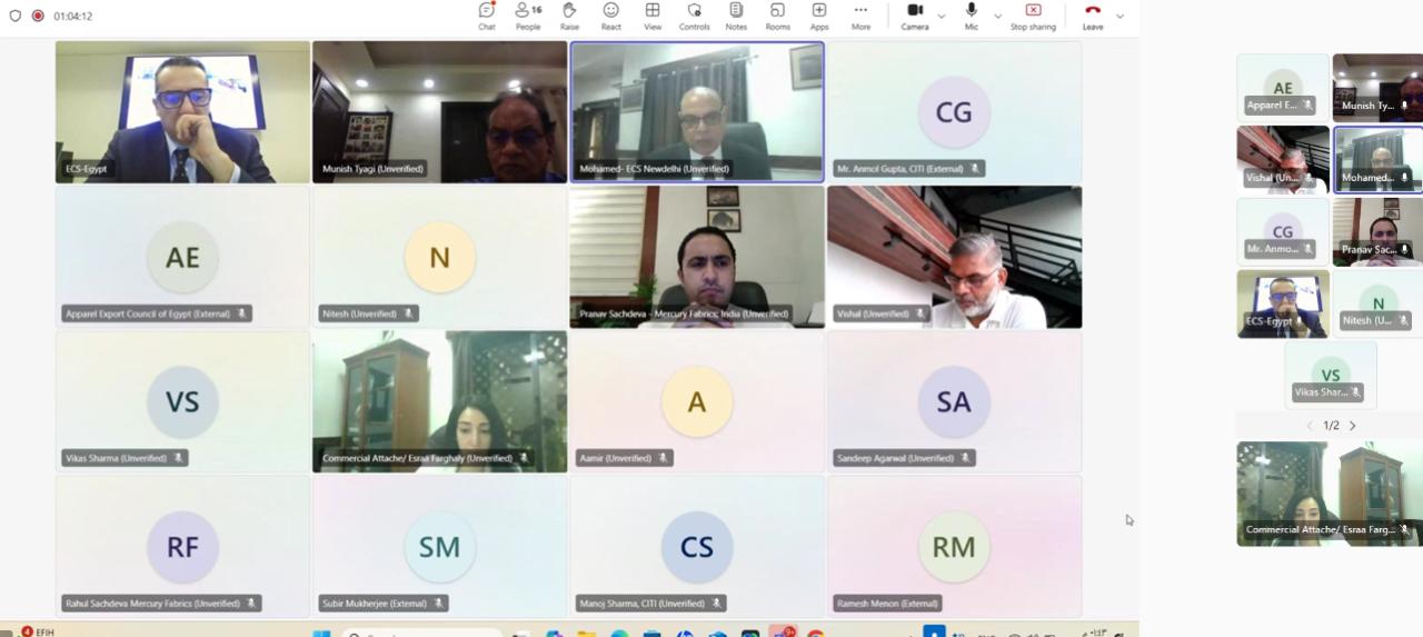 في إطار جهود جهاز التمثيل التجاري المصري لتعزيز العلاقات التجارية والاستثمارية بين مصر والهند، نظم مكتب التمثيل التجاري في نيودلهي برئاسة المستشار التجاري/ محمد عبد المجيد، اليوم الاثنين الموافق 27 أكتوبر 2025، لقاءً افتراضيًا حول صناعة المنسوجات والملابس الجاهزة، بمشاركة 10 من كبريات الشركات الهندية العاملة في القطاع، إلى جانب اتحاد صناعة النسيج الهندية (CITI)، وذلك بالتنسيق مع شئون الترويج بالاستثمار بجهاز التمثيل التجاري المصري، والمجلس التصديري للملابس الجاهزة والمجلس التصديري للمنسوجات.