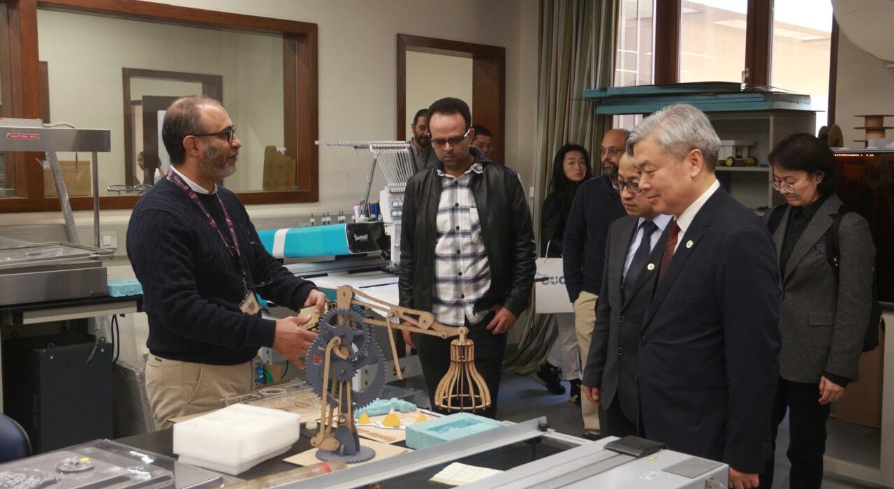 شملت الجولة أيضاً زيارات إلى حاضنة أعمال الجامعة “إي يو سي فينتشر لاب”، ومركز الابتكار، إلى جانب مكتب البرامج والخدمات الدولية واستوديوهات قسم الصحافة والإعلام حيث تم استعراض نماذج من أعمال الطلاب القائمة على التعلم امن خلال المشروعات، مما سلط الضوء على التزام الجامعة المستمر بالتعلم التجريبي والابتكار الذي يقوده الطلاب، وقدم رؤية واضحة لكيفية تحويل الطلاب للمعرفة النظرية إلى حلول واقعية وملموسة.