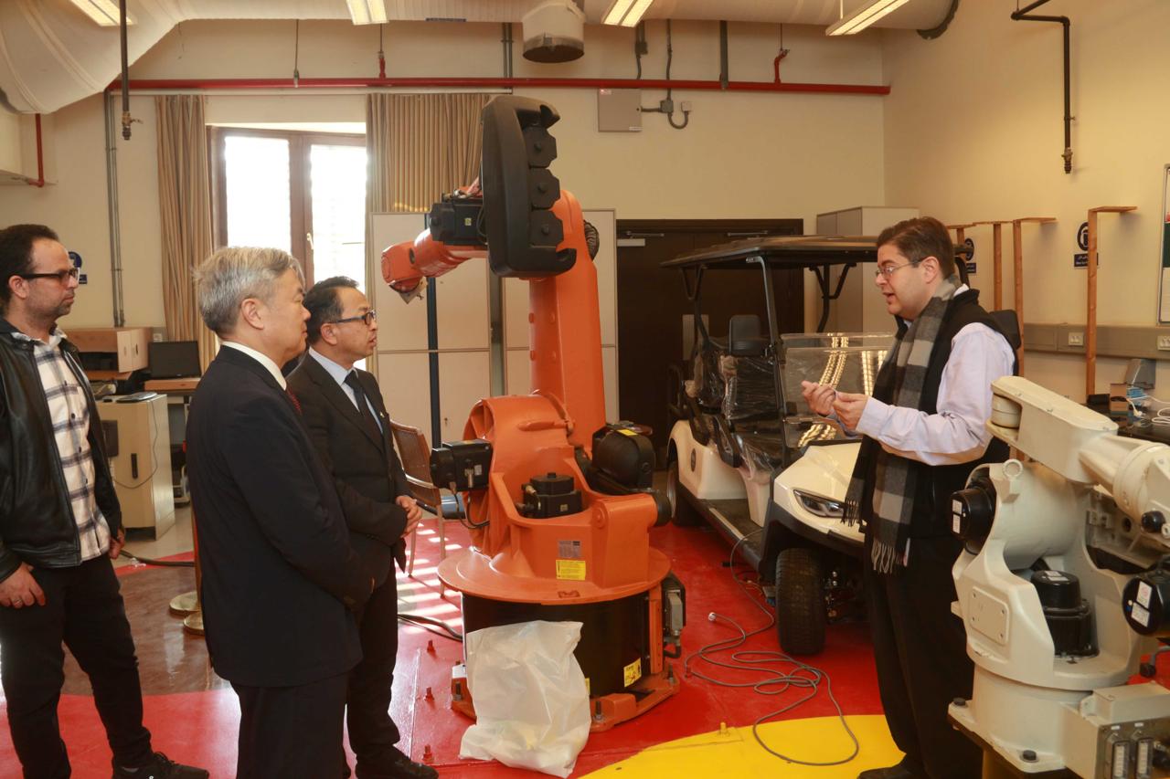 شارك أعضاء الوفد، خلال وجودهم في الحرم الجامعي، في جولة موسعة داخل معامل كلية العلوم والهندسة، شملت معمل الواقع الافتراضي، ومعامل علوم الحاسب الآلي، ومعمل الروبوتات، ومصنع الطوخي التعليمي للابتكار وريادة الأعمال حيث أتاحت لهم الاطلاع عن قرب على التطبيق العملي للإمكانات التقنية بالجامعة الأمريكية بالقاهرة، وكيفية تفاعل الطلاب مع أحدث التقنيات.