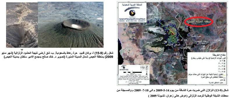 فى مايو 2009 حدث عاصفة زلزالية فى منطقة تسمى العيص شمال غرب المدينة المنورة، وهى منطقة بها وبجوارها ما يسمى الحرات وهى مناطق بركانية (كما فى الصور المرفقة) وتبلغ مساحة الحرات 180 ألف كيلو متر مربع وتوجد أعداد كبيرة من فوهات البراكين بها، كان أكبر زلزال ضرب العيص قوته 5.39 (مايو 2009) واتبعه الكثير من الهزات، وخاف الجميع من حدوث بركان كما كان يحدث تاريخيا؛ وقامت السلطات السعودية بإخلاء منطقة العيص، وتوقع المختصون أن يثور بركان العيص الذى خمد منذ فترة طويلة.
