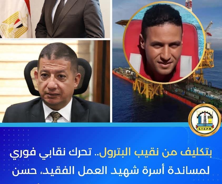 وشارك الأستاذ حسام فاروق نيابة عن المحاسب، عباس صابر رئيس النقابة العامة للعاملين بقطاع البترول والمهندس سيد سليم، رئيس شركة رشيد للبترول، وأعضاء مجلس الإدارة والأستاذة، رانيه حسين رئيس اللجنة النقابية بشركة رشيد للبترول و السادة أعضاء اللجنة النقابية وممثلو الشريك الأجنبي في مراسم تشييع جثمان “شهيد العمل”.وأكد المحاسب عباس صابر، أن النقابة العامة تحركت منذ اللحظات الأولى للحادث، وظلت على تواصل مستمر مع إدارة الشركة واللجنة النقابية لمتابعة لمساندة أسرة الزميل الراحل. وشدد على أن النقابة لن تتأخر في تقديم أي دعم طبي أو إداري أو إنساني لأبنائها من العاملين وأسرهم، انطلاقًا من مسؤوليتها النقابية والمجتمعية.