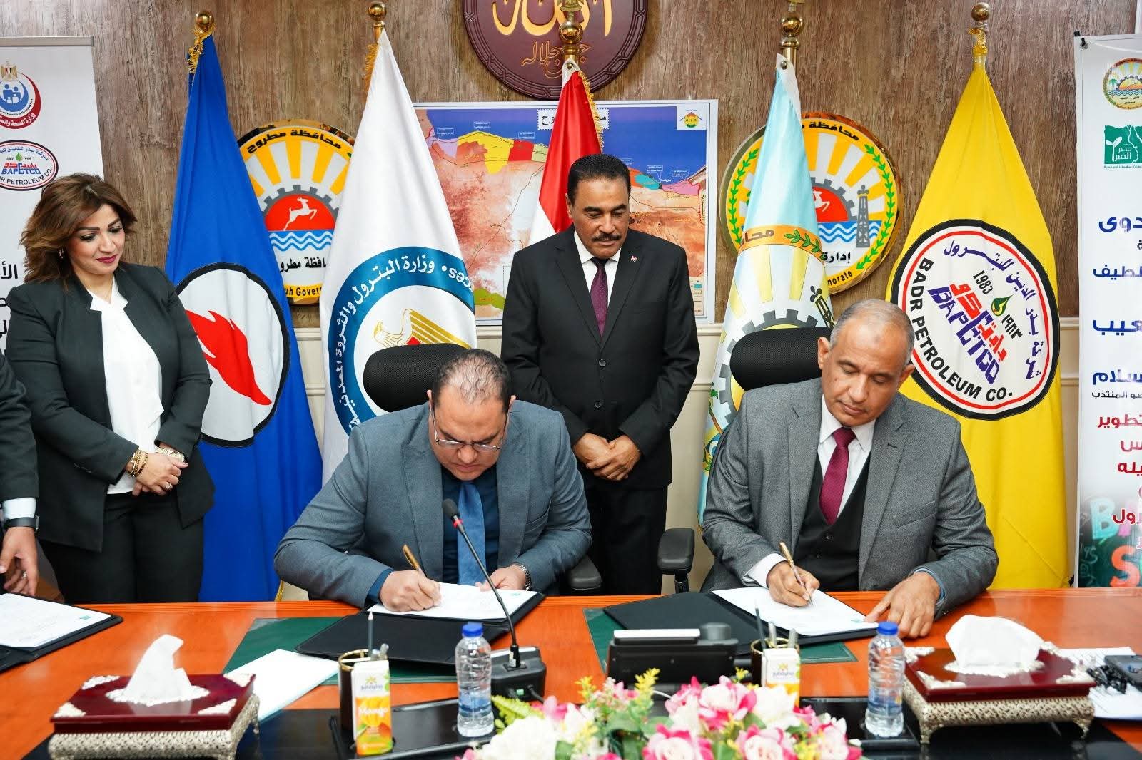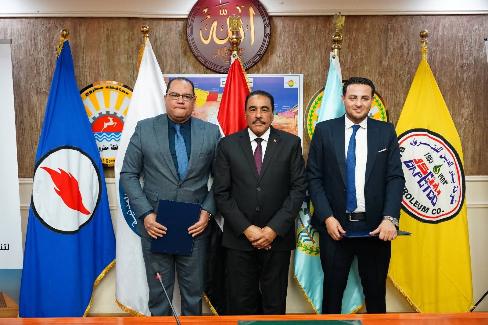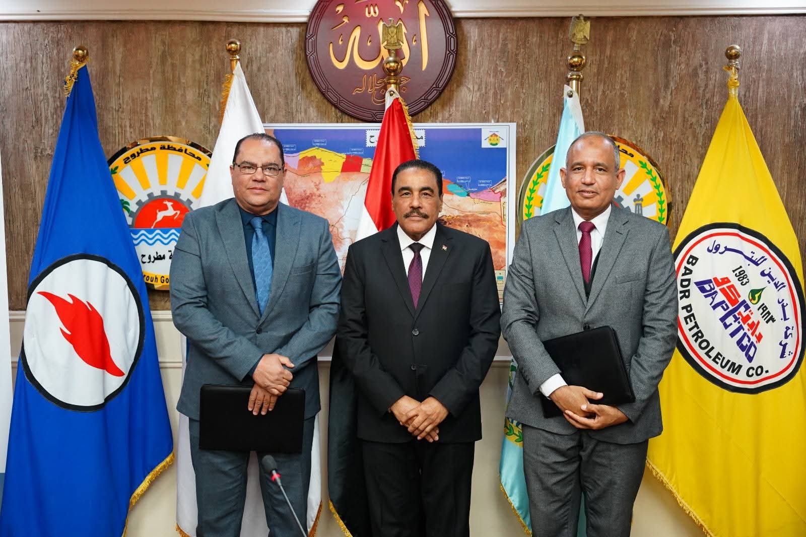 شهد اللواء خالد شعيب محافظ مطروح اليوم الإثنين توقيع برتوكولي تعاون بين شركة بدر الدين للبترول ومؤسسة إبراهيم بدران الخيرية لتنظيم عدد 3 قوافل طبية لسيوة ،وبين شركة بدر الدين للبترول ومؤسسة مصر الخير لتطوير ٤ مدارس مجتمعية بالنجيلة وذلك بحضور المهندس خالد عبد السلام رئيس مجلس إدارة شركة بدر الدين للبترول والعضو المنتدب واللواء مجدى الوصيف السكرتير العام للمحافظة ، والأستاذ عبد الفتاح عاطف عن الهيئة العامة للبترول للمسئولية المجتمعية والدكتور صابر حسن رئيس قطاع التعليم بمؤسسة مصر الخير ، والدكتور محمد عباس ممثلاً عن مؤسسة إبراهيم بدران الخيرية ، أعضاء الهيئة البرلمانية بمطروح عنهم النائب جمال الشورى والعمدة موسى الصنقرى رئيس مجلس عمد ومشايخ مطروح والأستاذة نسرين فتحى ابو عجيزة مدير عام مساعد المسؤولية المجتمعية بشركة بدر الدين .ووكلاء الوزارات مديري المديريات والإدارات المعنية بالمحافظة الدكتور أحمد رفعت مدير عام مديرية الصحة ،والاستاذة نادية فتحى مدير عام مديرية التربية والتعليم ،والدكتورة دار السلام حسين مدير عام مديرية التضامن الاجتماعي والمهندس مجاهد نجم مدير فرع هيئة الأبنية التعليمية والأستاذة رجاء سالم مدير المركز التكنولوجي لخدمة المواطنين
