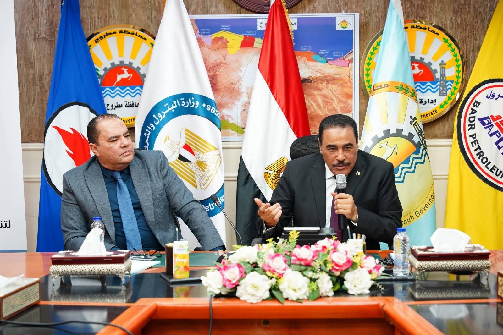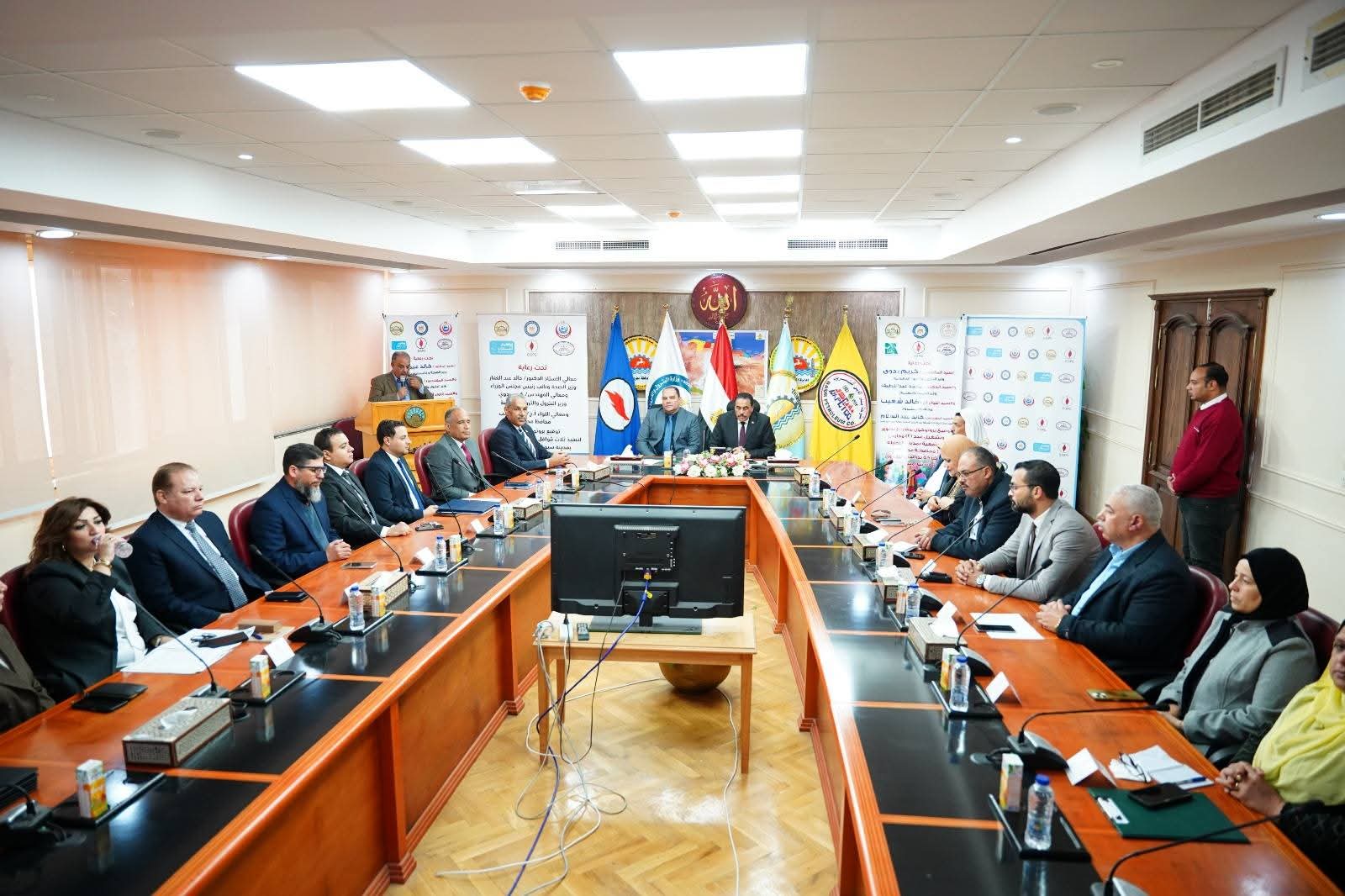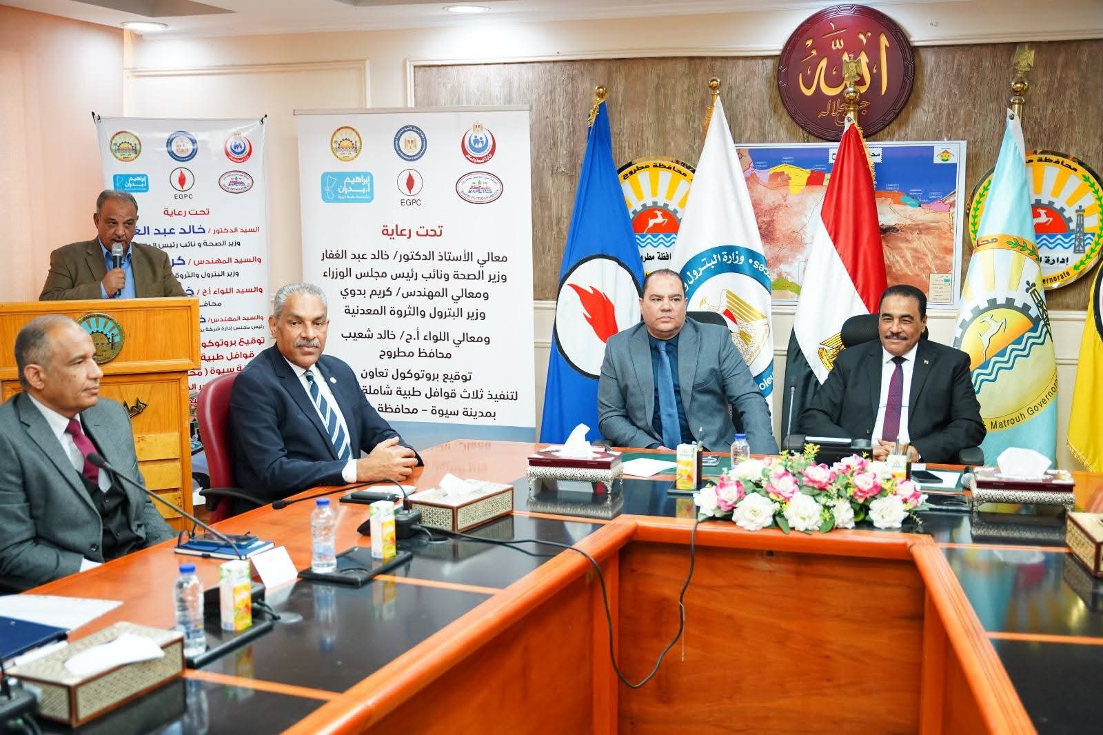 شهد اللواء خالد شعيب محافظ مطروح اليوم الإثنين توقيع برتوكولي تعاون بين شركة بدر الدين للبترول ومؤسسة إبراهيم بدران الخيرية لتنظيم عدد 3 قوافل طبية لسيوة ،وبين شركة بدر الدين للبترول ومؤسسة مصر الخير لتطوير ٤ مدارس مجتمعية بالنجيلة وذلك بحضور المهندس خالد عبد السلام رئيس مجلس إدارة شركة بدر الدين للبترول والعضو المنتدب واللواء مجدى الوصيف السكرتير العام للمحافظة ، والأستاذ عبد الفتاح عاطف عن الهيئة العامة للبترول للمسئولية المجتمعية والدكتور صابر حسن رئيس قطاع التعليم بمؤسسة مصر الخير ، والدكتور محمد عباس ممثلاً عن مؤسسة إبراهيم بدران الخيرية ، أعضاء الهيئة البرلمانية بمطروح عنهم النائب جمال الشورى والعمدة موسى الصنقرى رئيس مجلس عمد ومشايخ مطروح والأستاذة نسرين فتحى ابو عجيزة مدير عام مساعد المسؤولية المجتمعية بشركة بدر الدين .ووكلاء الوزارات مديري المديريات والإدارات المعنية بالمحافظة الدكتور أحمد رفعت مدير عام مديرية الصحة ،والاستاذة نادية فتحى مدير عام مديرية التربية والتعليم ،والدكتورة دار السلام حسين مدير عام مديرية التضامن الاجتماعي والمهندس مجاهد نجم مدير فرع هيئة الأبنية التعليمية والأستاذة رجاء سالم مدير المركز التكنولوجي لخدمة المواطنين