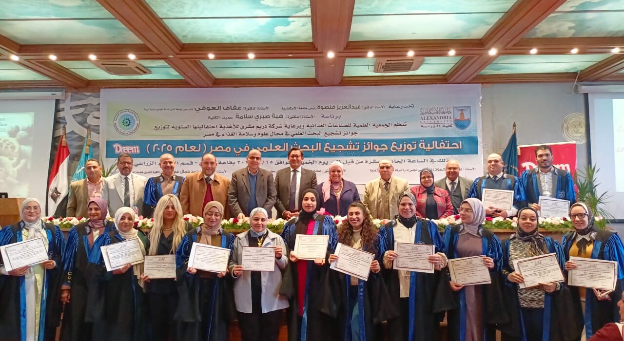 شهدت قاعة المؤتمرات بكلية الزراعة جامعة الإسكندرية احتفالية كبرى لتوزيع جوائز تشجيع البحث العلمي وسلامة الغذاء في مصر، أسفرت عن فوز 36 باحثًا و5 مبتكرين، إلى جانب 20 فكرة ابتكارية في مجال الصناعات الغذائية، شملت تطبيقات النانوتكنولوجي والأغذية الصحية.
