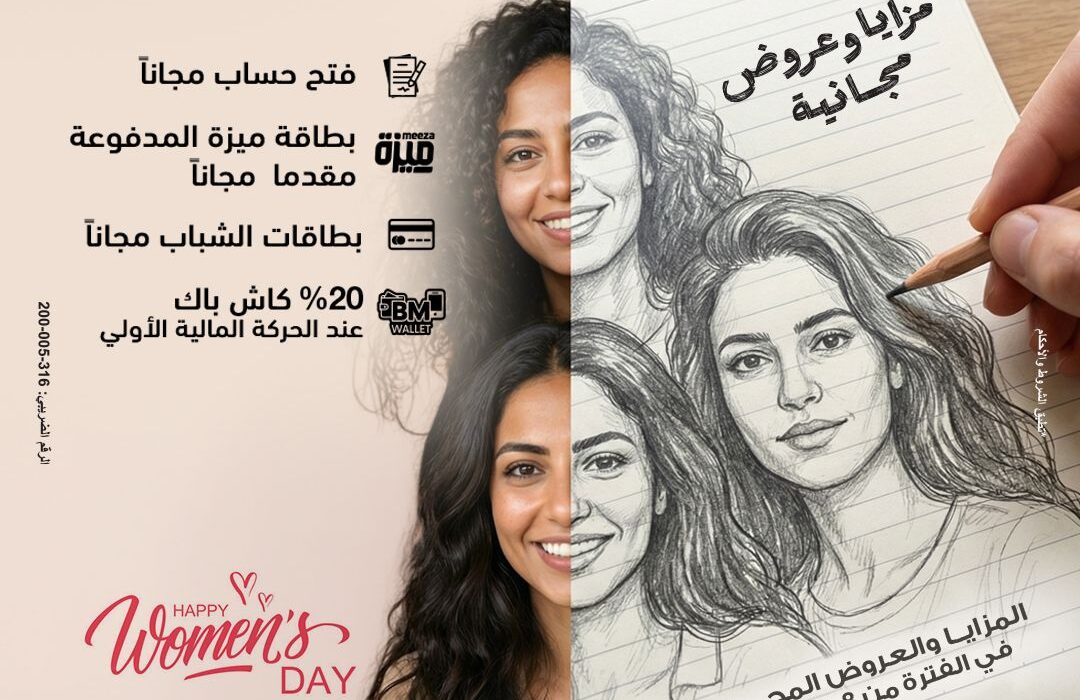 هذا ويحرص البنك على توفير العديد من المزايا والعروض المجانية التي تخدم كافة العملاء وبخاصة المرأة والشباب، كونهم الفئة الأكبر في المجتمع، وذلك طوال مدة الفعالية التي تمتد خلال الفترة من 8 الي 31 مارس 2026 ، ومنها فتح الحسابات الجارية والتوفير (أفراد) مع الاعفاء من المصروفات الخاصة بفتح الحساب والحد الأدنى لفتح الحساب ومصاريف الدمغة (حسابات جارى وتوفير بالجنيه المصري (نمطي وإسلامي) ، حسابات المنجز (جارى وتوفير نمطي وإسلامي) ، حسابات الشباب ،حساب توفير الممكن ،حساب جاري حوالتي جنيه مصري / دولار امريكي ، هذا بالإضافة الي إمكانية إصدار بطاقة ميزة للخصم الفوري مجانا للحسابات، وإمكانية الحصول على بطاقة ميزة المدفوعة مقدما معفاة من مصاريف الإصدار ، ويمكن للعملاء من 15 سنة إلى 21 سنة فتح الحسابات مجاناً، وإصدار بطاقة BM للخصم الفوري مجاناً ضمن برنامج الشباب، أما بالنسبة لمحفظة بنك مصر الإلكترونية BM Wallet يتم استرداد 20% من الحركة المالية الأولى، العرض متاح لمرة واحدة فقط خلال فترة الفعالية وذلك للمحفظة المفعلة ، مع تطبيق الشروط والأحكام المنظمة لذلك.
