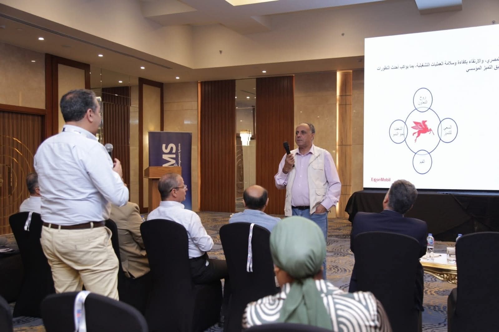 وبدأت الفعاليات بتقديم من شريف سراج الدين، نائب رئيس مجلس الإدارة والعضو المنتدب بشركة اكسون موبيل مصر ، حول الأهداف والمحاور الرئيسية للملتقى وعلى رأسها تبادل الخبرات والمعرفة للحفاظ على استمرارية التطور الذى نشهده منظومة نقل وتداول المنتجات البترولية بالسوق المحلى، موضحًا أن الملتقى يتضمن مناقشات مفتوحة للجميع حول تحديات المنظومة فيما يخص النقل وتشغيل المحطات والارتقاء بكفاءة وسلامة العمليات التشغيلية والابتكار والحلول الرقمية .