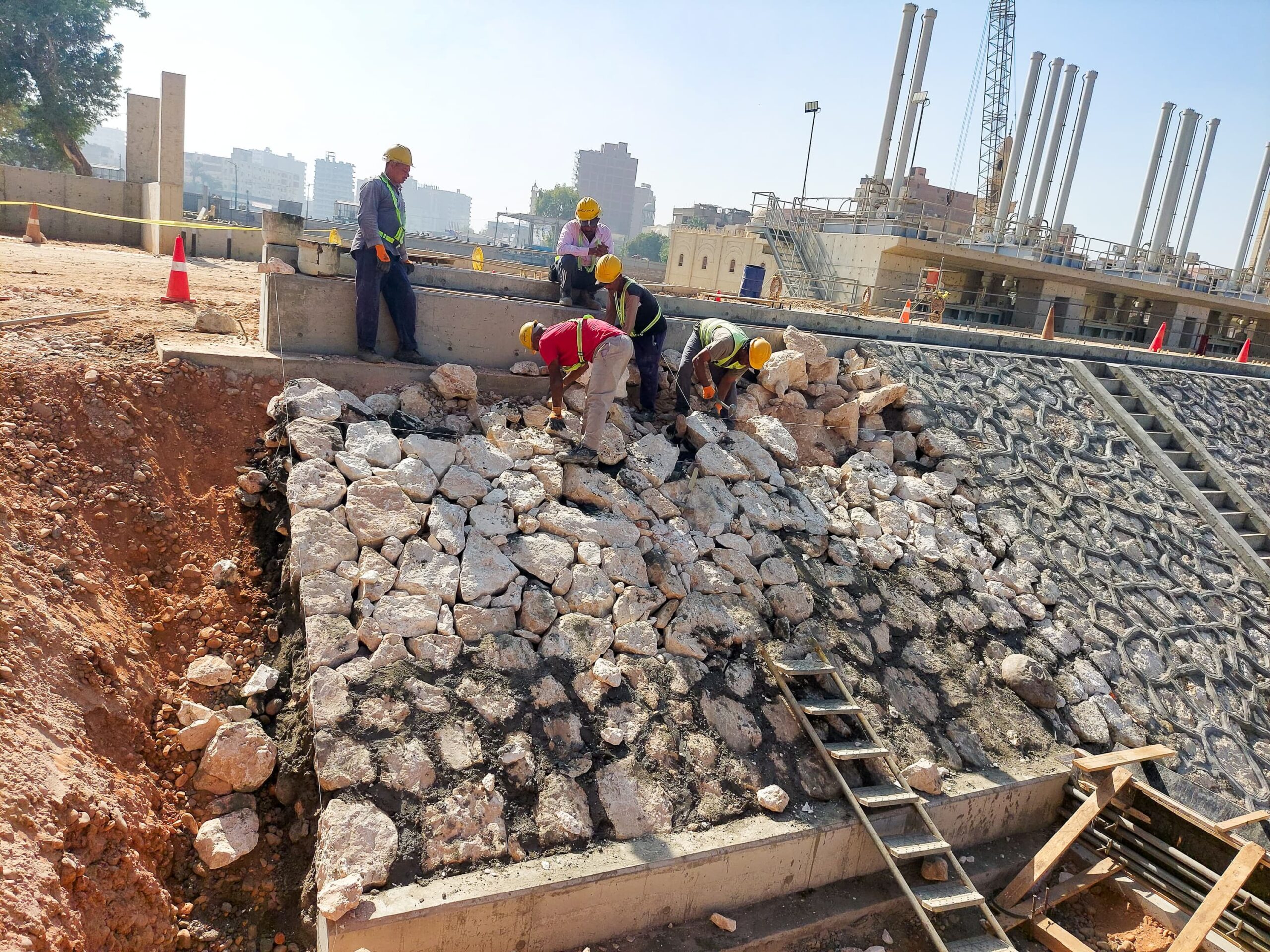 كما يجرى تنفيذ أعمال الطرق والحوائط الساندة وتكسية الميول بمبانى الأحجار و الأسوار وشبكة الكهرباء والاضاءة الخارجية، وجارى تركيب منظومة التشغيل فى مبنى التحكم، وجارى التشطيبات لمبنى التشغيل والتحكم ومبنى مخازن علب التجفيف للصيانة .