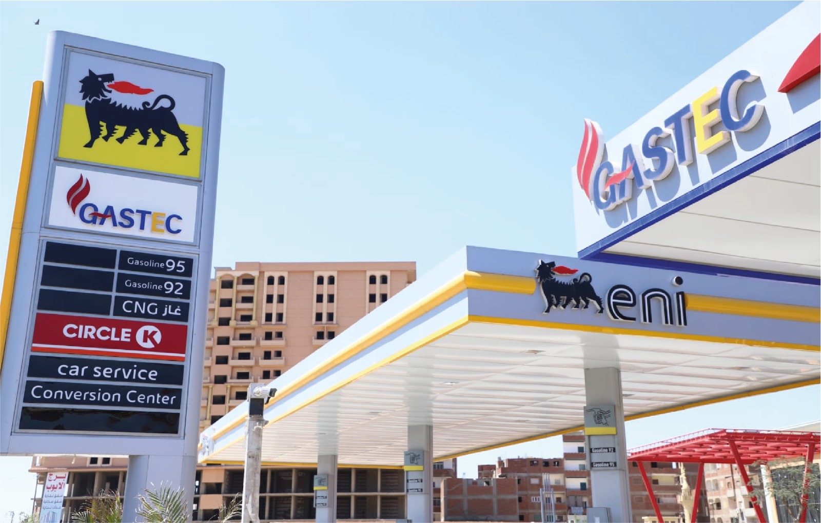 وتُعد المحطة أحد النماذج الاستثمارية المتميزة التي تنفذها الشركة بالتعاون مع شركة إيني الإيطالية، حيث تُقام على مساحة تقارب 11 ألف متر مربع، وتتميز بتكامل خدماتها التي تشمل محطة غازتك للتموين بالغاز الطبيعي، ومركز تحويل للسيارات للعمل بالوقود الثنائى (غاز طبيعى – بنزين)، ومركز لاختبار أسطوانات الغاز الطبيعى، ومحطة إيـنـى للتموين بالوقود السائل.