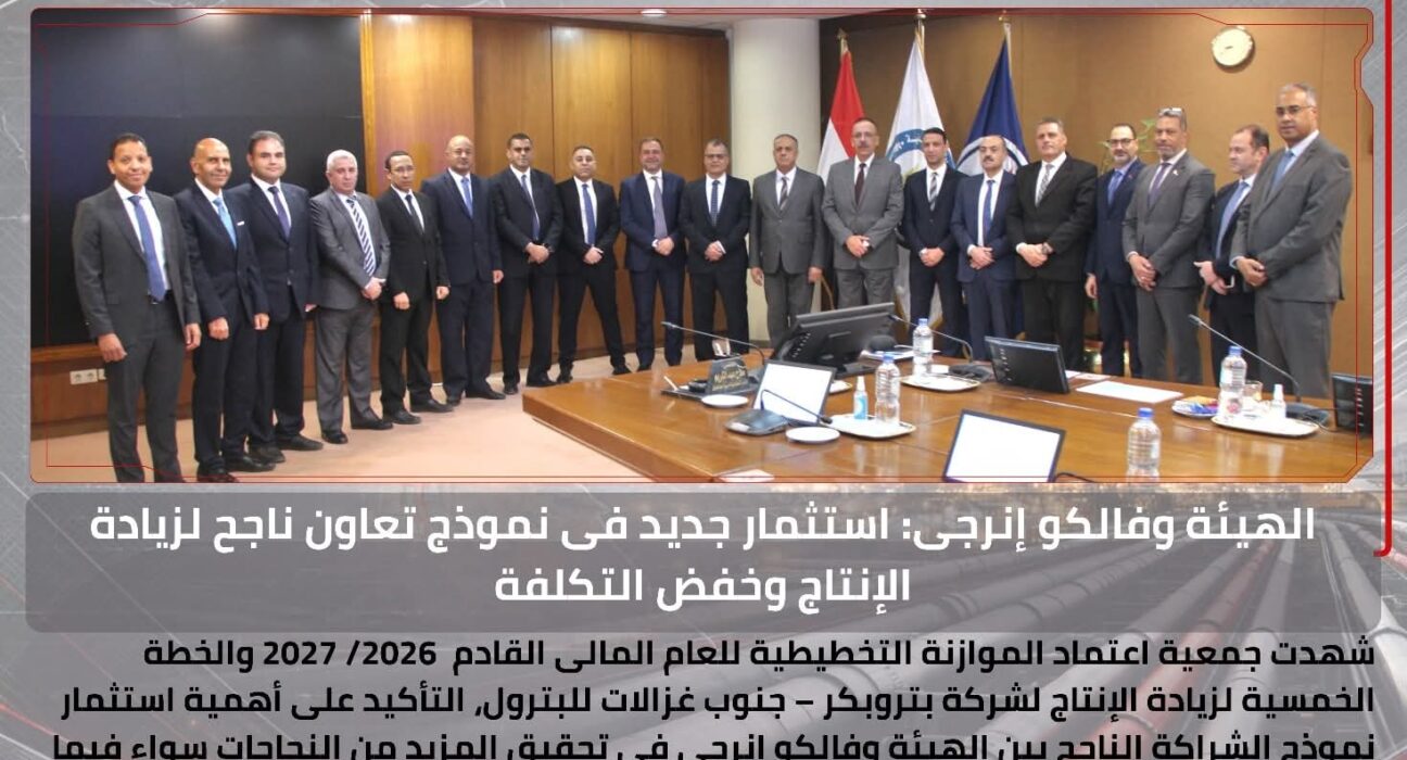 شهدت جمعية اعتماد الموازنة التخطيطية للعام المالى القادم 2026/ 2027 والخطة الخمسية لزيادة الإنتاج لشركة بتروبكر – جنوب غزالات للبترول، التأكيد على أهمية استثمار نموذج الشراكة الناجح بين الهيئة وفالكو إنرجى فى تحقيق المزيد من النجاحات سواء فيما يخص زيادة الإنتاج أو تقليل تكلفة إنتاج البرميل أو المزيد من الاستدامة لتأمين بيئة العمل.