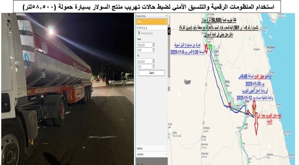 استمراراً للدور الرقابي للهيئة المصرية العامة للبترول في التصدي لكافة أشكال التلاعب بالمنتجات البترولية والتصدي لأعمال تهريب السولار والبنزين ، أسفرت أعمال اللجنة المركزية للرقابة على نقل وتداول المنتجات البترولية خلال الأسبوع الثالث من نوفمبر 2025 عن ضبط عدد من قضايا تهريب السولار، من خلال استخدام منظومة التتبع GPS والتنسيق مع الجهات الأمنية في رصد إحدى السيارات الصهريجية حمولة 58.5 ألف لتر، دأب سائقها على فصل جهاز التتبع خلال الرحلة. وتم إعداد كمين أمني بمحافظة الأقصر أسفر عن ضبط السيارة بكامل حمولتها عقب تغيير خط السير، حيث أقر السائق بقيامه بتهريب الكميات المخصصة رسمياً لإحدى محطات الوقود بالأقصر. كما تم تحرير محضر للمحطة المتورطة في تهريب كميات بلغت نحو 2.091 مليون لتر سولار و100.5 ألف لتر بنزين 80، وبلغ إجمالي الغرامات المستحقة عن تلك المخالفات 68 مليون جنيه.