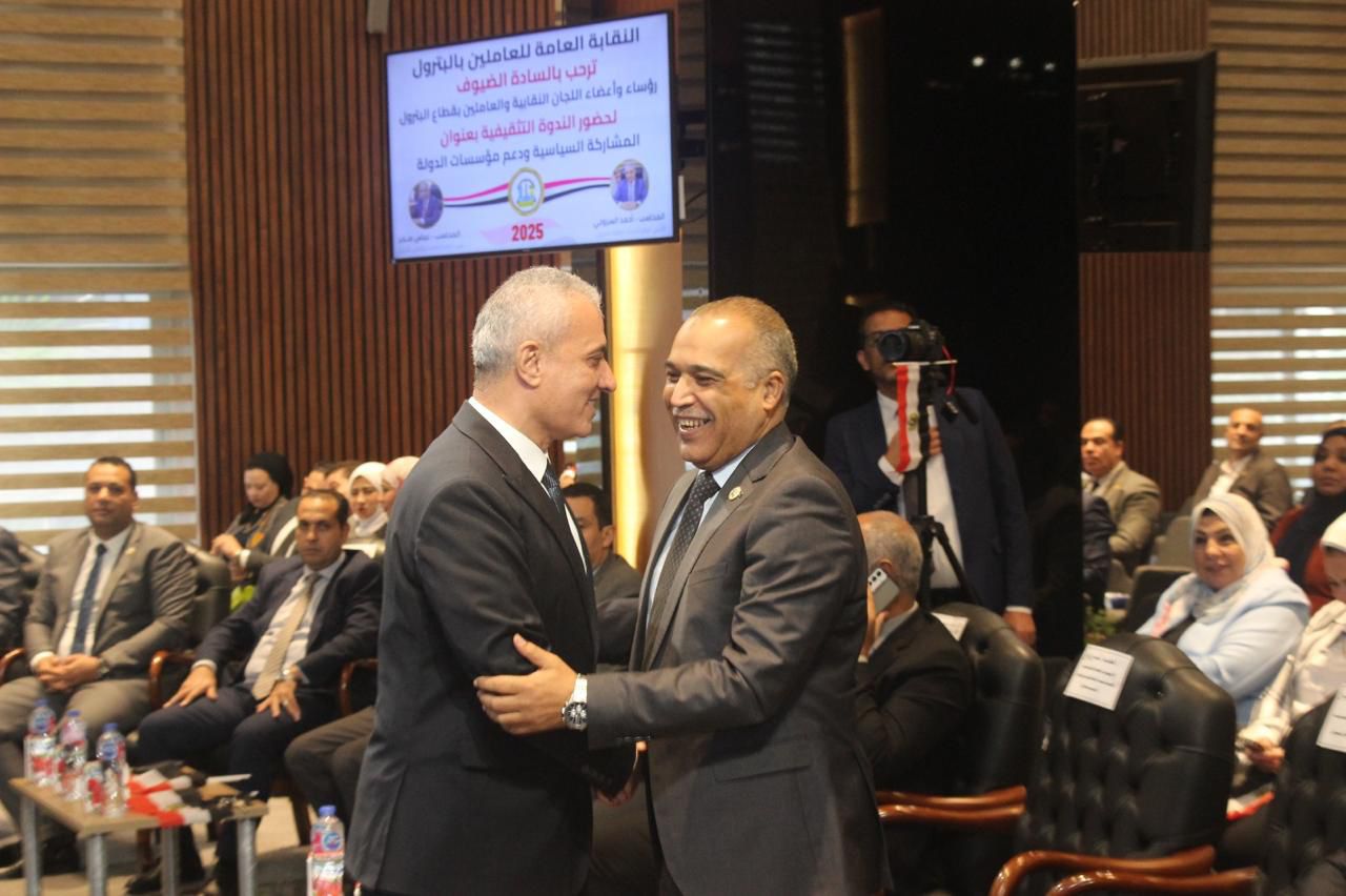 ووجّه رئيس النقابة الشكر إلى الرئيس عبد الفتاح السيسي لاهتمامه الكبير بالعامل المصري ودوره في مسيرة البناء، كما ثمَّن دعم وزير العمل محمد جبران، لجهوده الكبيرة في دعم الحركة النقابية وتمكين العمال وتعزيز المشاركة الوطنية في مختلف الاستحقاقات، مؤكدًا أنه نموذج مشرف للقيادة العمالية الوطنية، ثم وجّه الشكر أيضًا إلى المهندس كريم بدوي وزير البترول والثروة المعدنية على دعمه المستمر للعاملين بالقطاع وحرصه على تطوير بيئة العمل، واصفًا إياه بأنه “سند العامل وشريك النقابة في كل تطوير يتم داخل شركات البترول”.