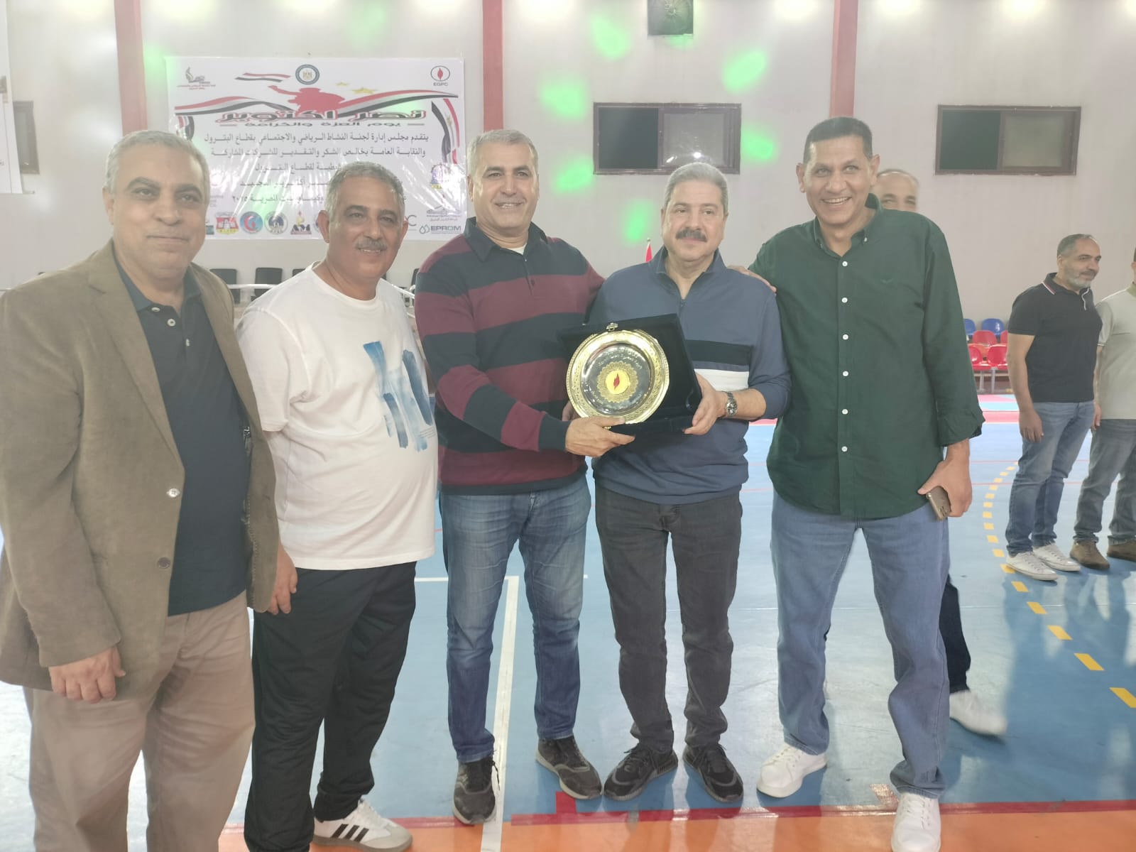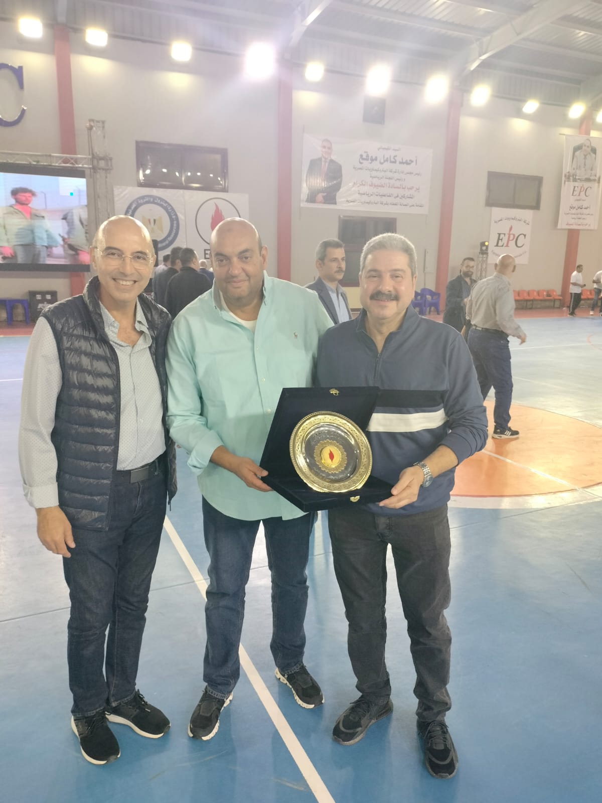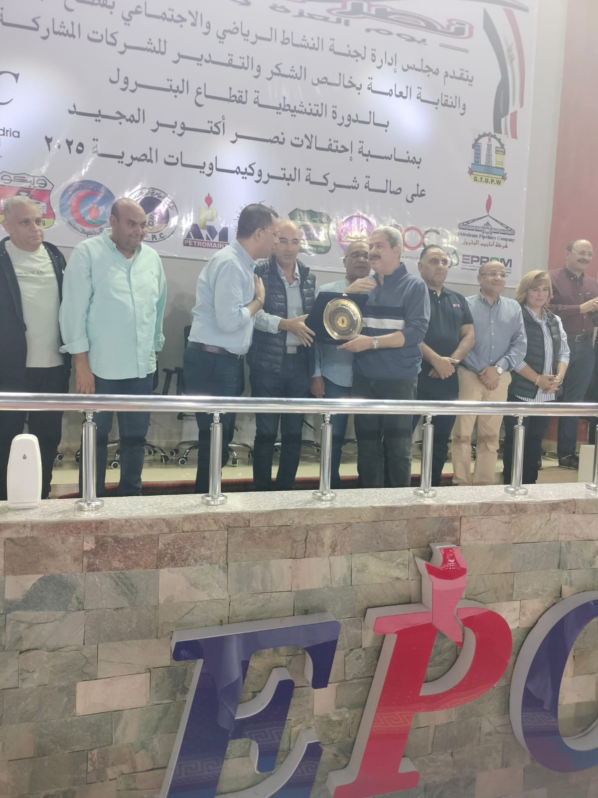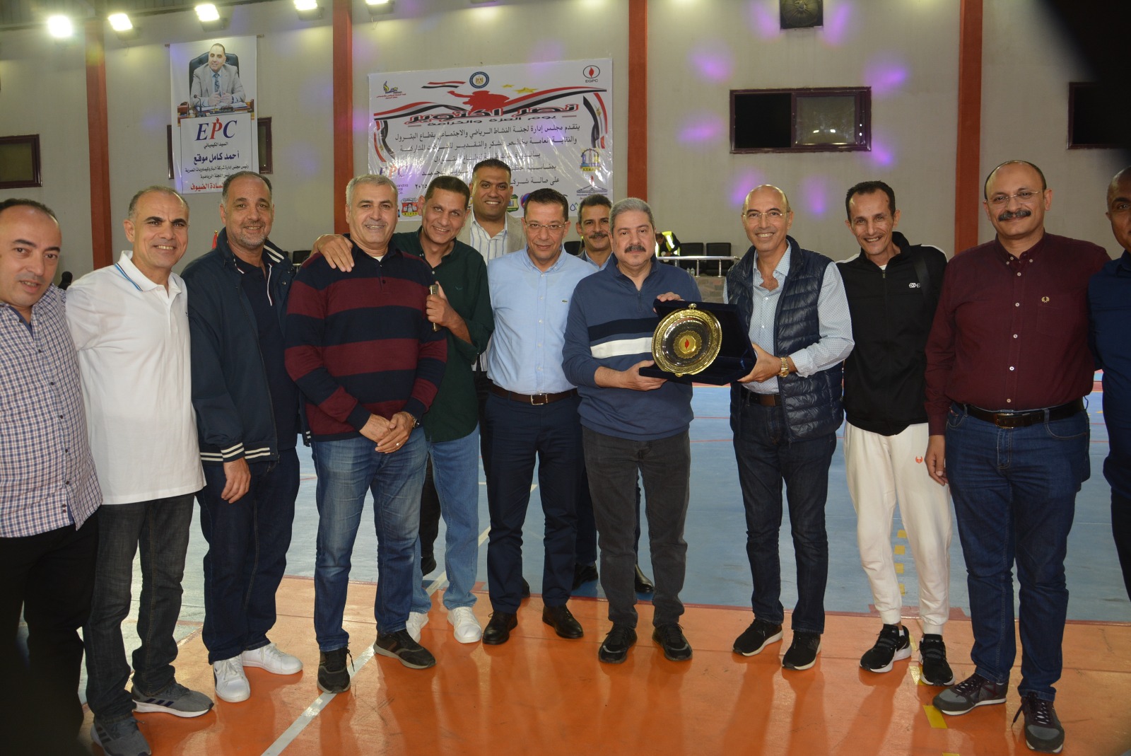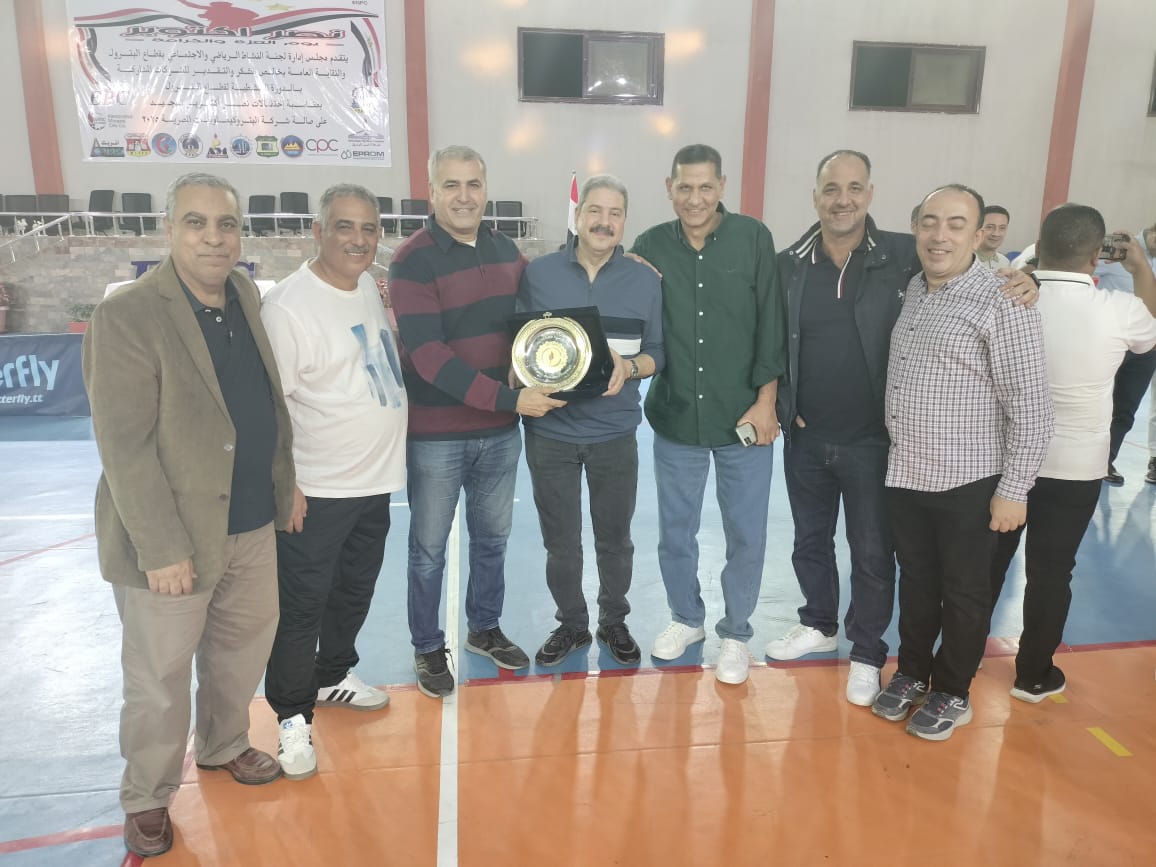 جاء الاحتفال بعد النهائى الرياضى الذى أقيم بشركة البتروكيماويات المصريه تحت رعايه لجنه النشاط الرياضي برئاسه الاستاذ/ حسام التونى وجميع اعضاء لجنه النشاط الرياضي الاستاذ محمد ثابت الاستاذ حسن محمود والاستاذ احمد شبانه وبحضور مشرف من سعادة الأستاذ/ احمد جمال نائب الرئيس التنفيذي للهيئة للشئون الإدارية والدكتور / محمد عاطف نائب الرئيس التنفيذي للهيئة للتجاره الخارجيه والمهندس/ احمد موقع رئيس مجلس اداره شركه البتروكيماويات وبحضور مشرف من نقيب العاملين بقطاع البترول المحاسب / عباس صابر