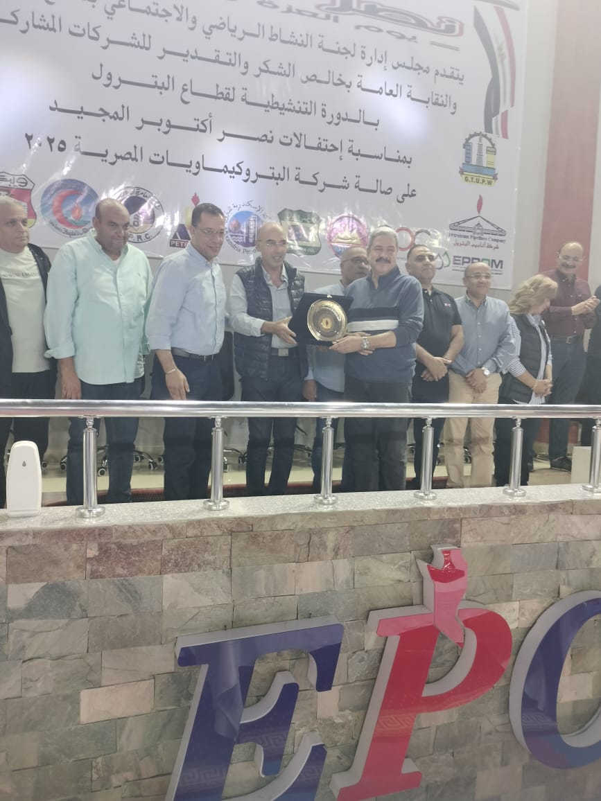 فى جو من الألفة والمحبة احتفلت لجنه النشاط الرياضي والاجتماعى لقطاع البترول، بتكريم المحاسب محمد مصطفى محمد على مساعد نائب الرئيس التنفيذي للهيئة للشئون المالية والاقتصادية وأمين صندوق لجنة النشاط الرياضي وذلك لبلوغه قمة العطاء الوظيفى يوم الاربعاء القادم الموافق 22/10/2025