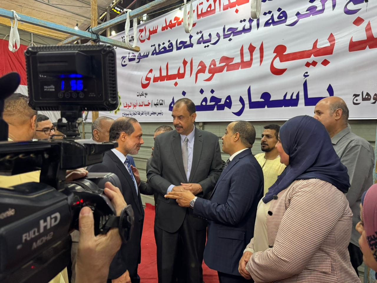 محافظ سوهاج ورئيس الغرفة التجارية يفتتحان منفذًا لبيع اللحوم البلدية بسعر 300 جنيه للكيلو بميدان العروبة