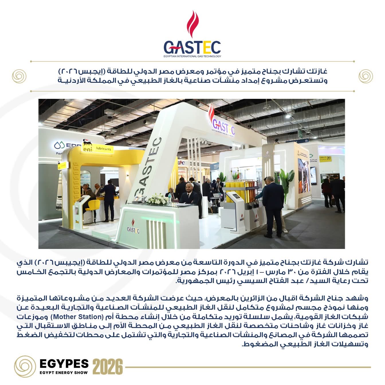 مشاركة متميزة لشركة غازتك بمعرض مصر الدولي للطاقة ايجبس 2026 بجناح متميز يعكس روح الإبداع والتميز