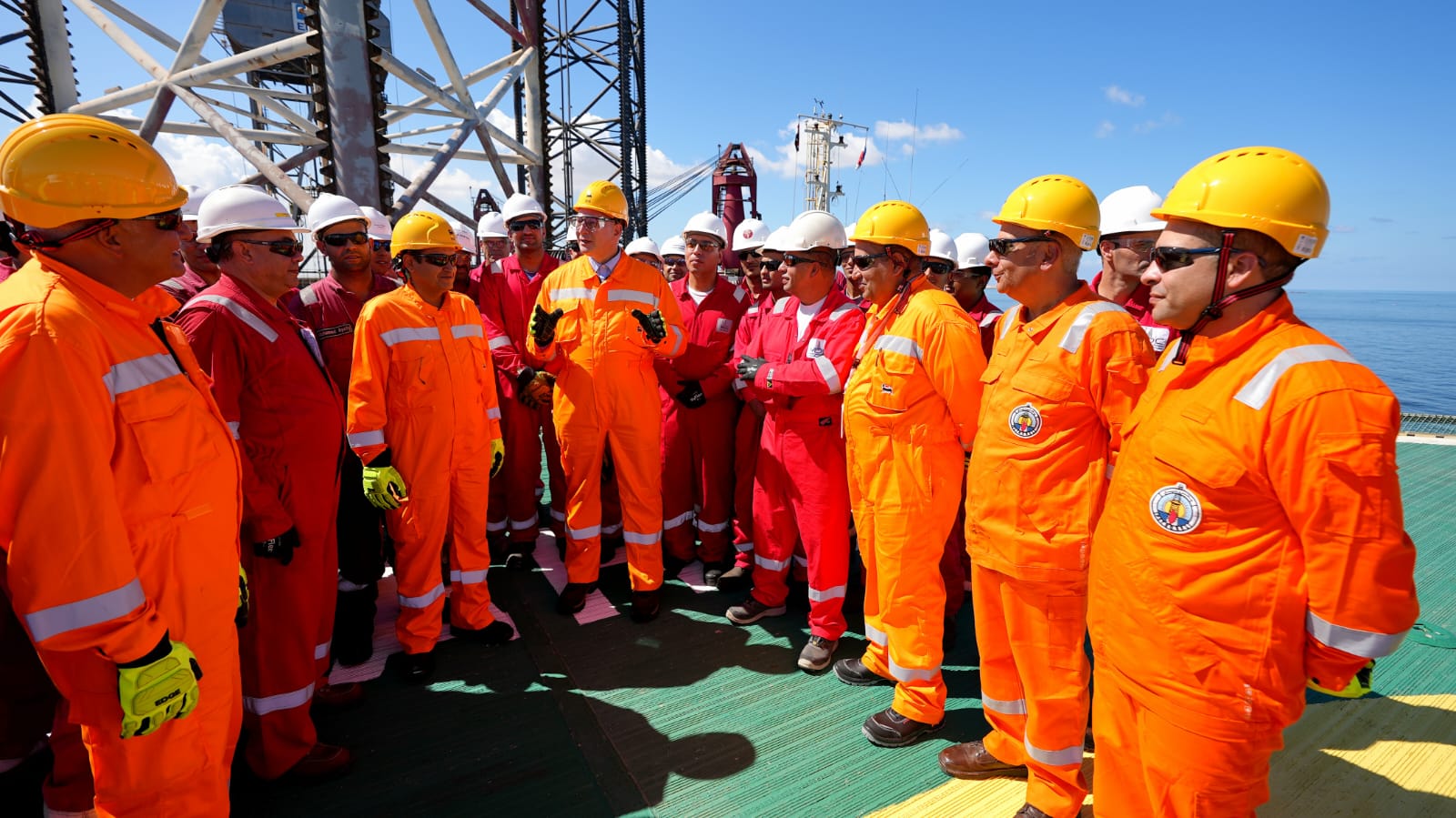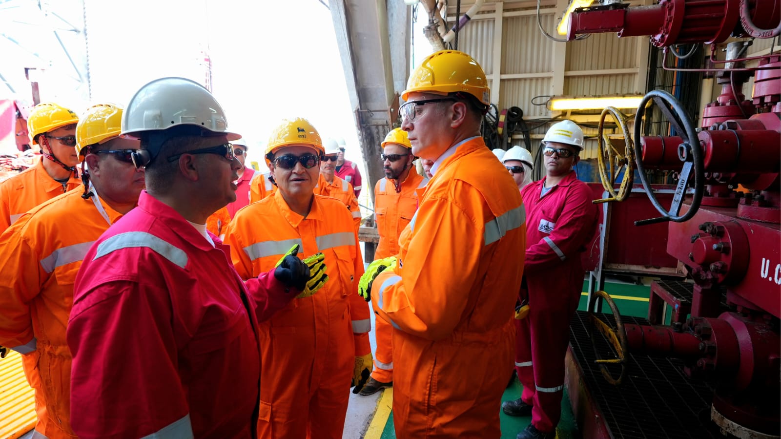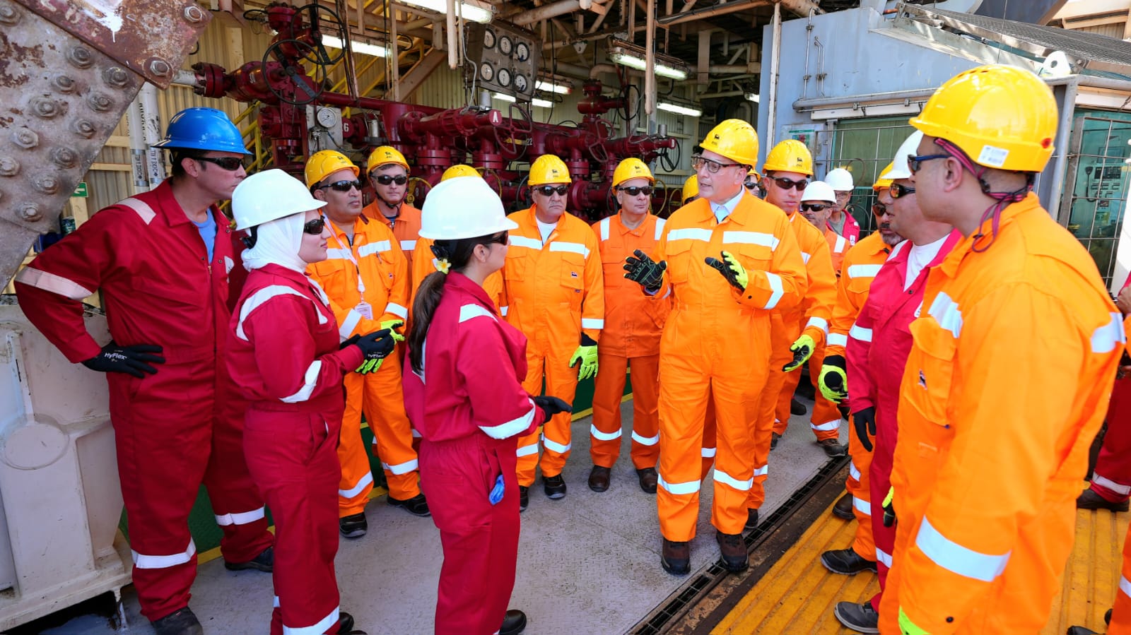والتقي الوزير مع فريق العمل المسؤول عن إدارة العمليات علي الحفار ، مثمنًا الجهود المبذولة لرفع كفاءة التشغيل.