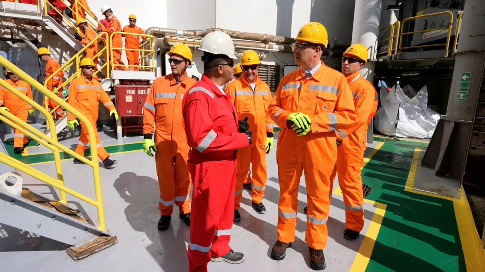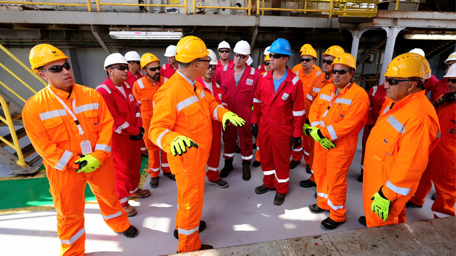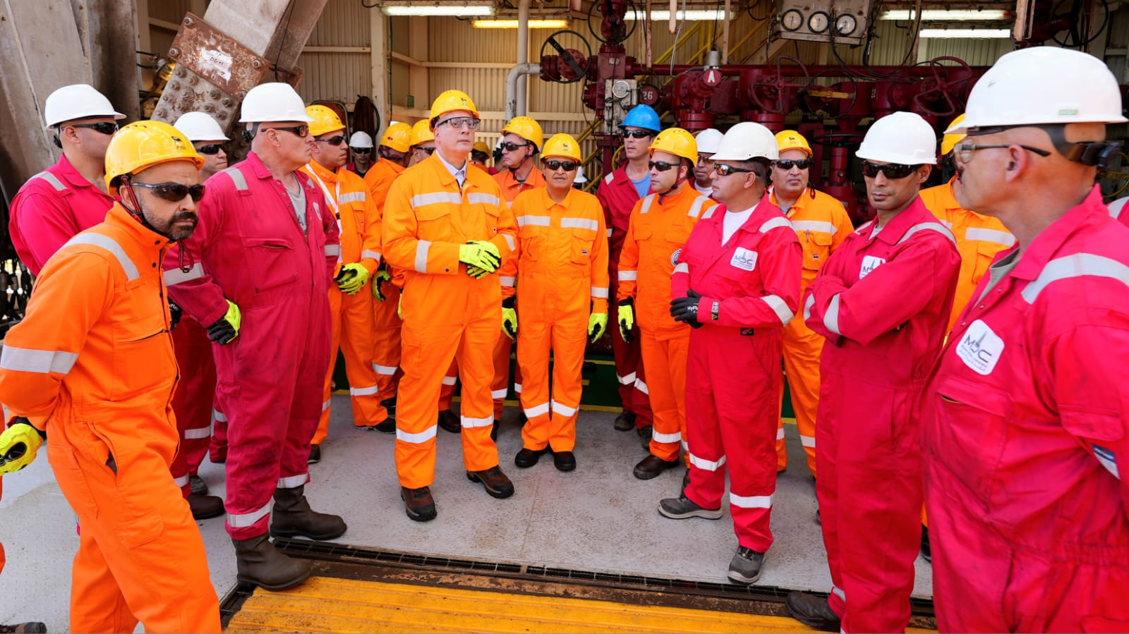 والتقي الوزير مع فريق العمل المسؤول عن إدارة العمليات علي الحفار ، مثمنًا الجهود المبذولة لرفع كفاءة التشغيل.