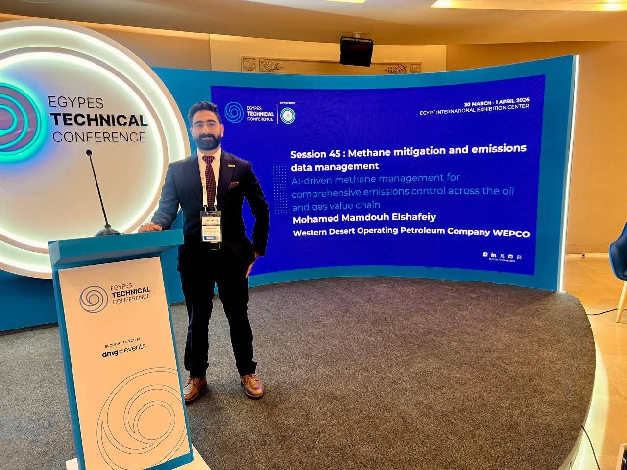 في إطار التحولات المتسارعة التي يشهدها قطاع الطاقة عالميًا نحو الاستدامة وخفض الانبعاثات، شاركت شركة بترول الصحراء الغربية – ويبكو في فعاليات مؤتمر EGYPES 2026، من خلال عرض تقني متقدم قدمه كيميائي / محمد الشافعي مدير عام مساعد المعامل و الإنتاج ، يستند إلى تقنيات الذكاء الاصطناعي لإدارة انبعاثات غاز الميثان عبر مختلف مراحل سلسلة القيمة في صناعة النفط والغاز.