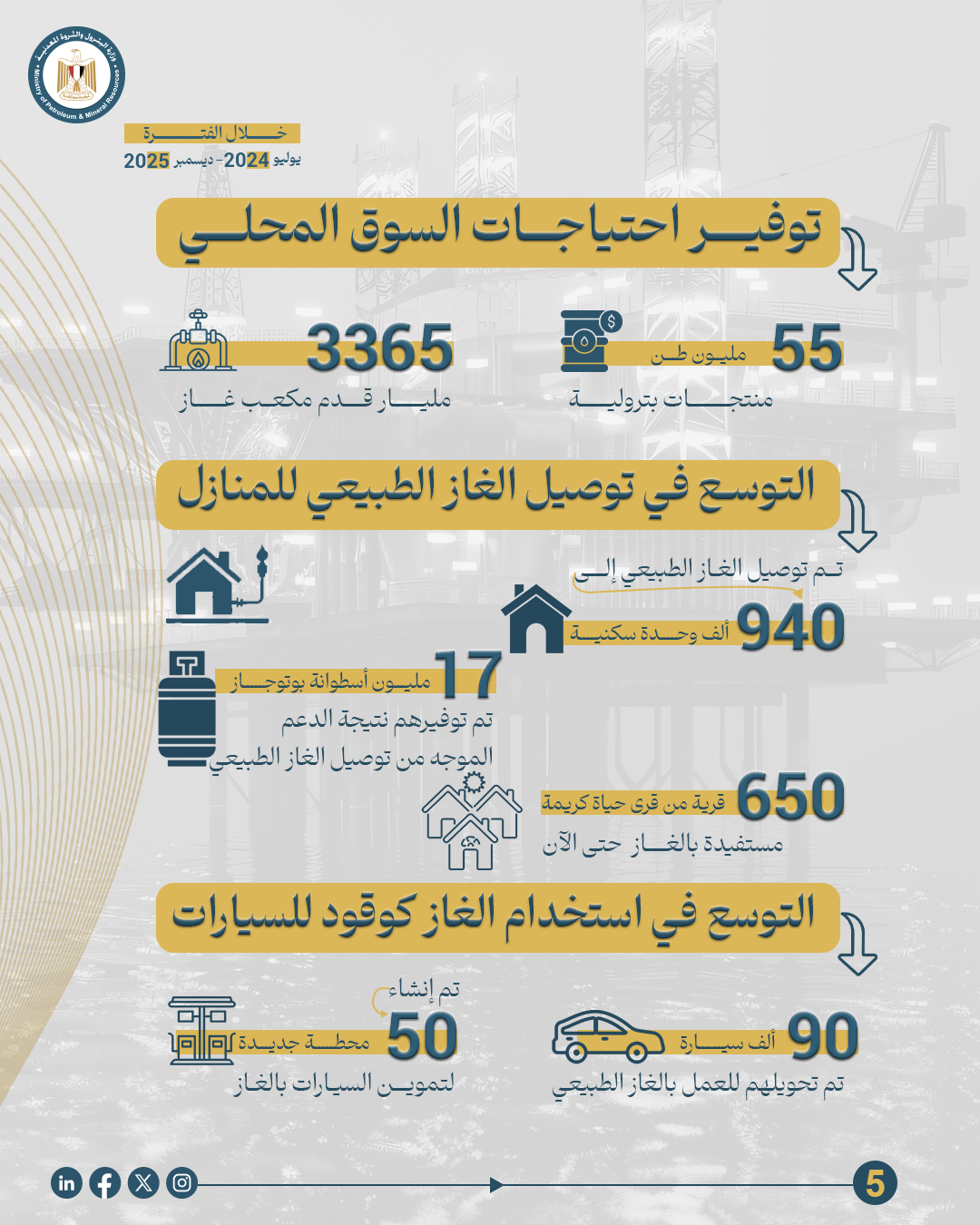 2025  .. عام التحول إلى صعود إنتاج الغاز بوزارة البترول والثروة المعدنية واستعادة ثقة المستثمرين