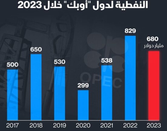 تراجعت عائدات الصادرات النفطية لدول “أوبك” بنسبة 18% في 2023 مقارنةً بالعام السابق، لتسجل 680 مليار دولار، بحسب بيانات التقرير السنوي لمنظمة “أوبك”.