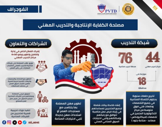كتب فتحي السايح تعتبر مصلحة الكفاية الإنتاجية والتدريب المهني أحد الأذرع التنفيذية لوزارة الصناعة في إعداد وتأهيل الكوادر الفنية المدربة وفق أحدث النظم