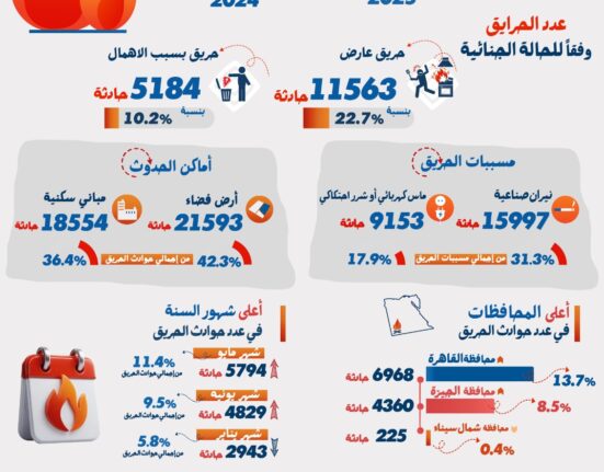كنب فتحي السايح كشف الجهاز المركزي للتعبئة العامة والإحصاء اليوم فى البيــان الصحفي للتقرير السنوى لحوادث الحـريق في مصر عام 2025