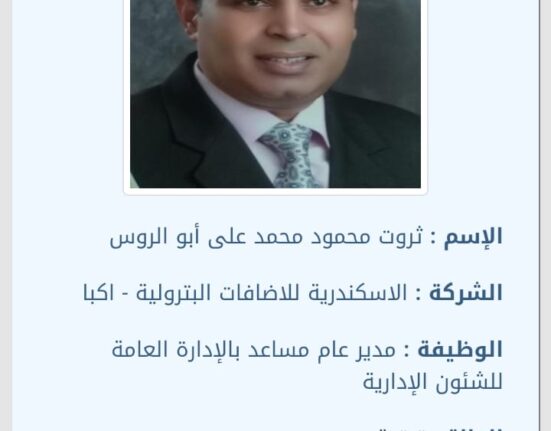 ترقية ثروت محمد أبو الروس إلى مدير عام مساعد بشركة الأسكندرية للإضافات البترولية – أكبا
