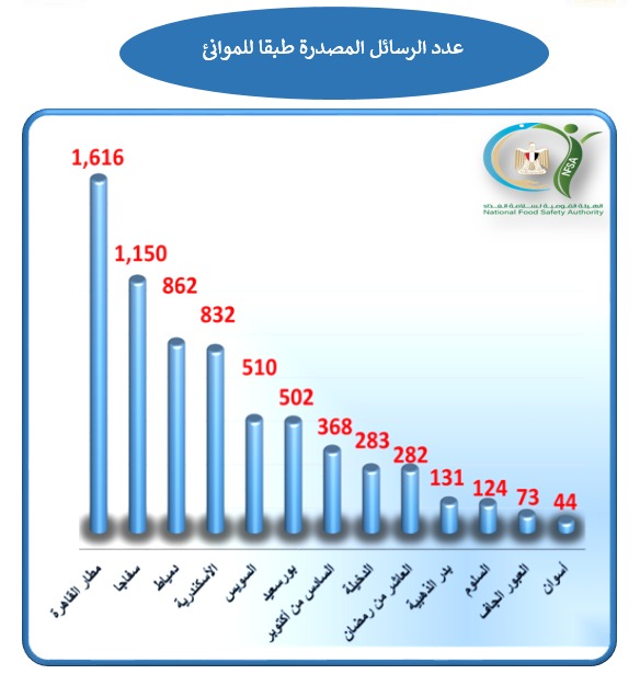 كتب فتحى السايح …و 310 ألف طن واردات غذائية واوكرانيا وروسيا أكبر الدول المصدرة الي مصر البطاطا الحلوة والرمان تتصدران قائمتي الخضر والفاكهة المصدرة ..والقمح والصويا تتصدران الواردات   كشفت الهيئة القومية لسلامة الغذاء برئاسة الدكتور طارق الهوبي عن ان عدد الرسائل الغذائية المصدرة طبقًا لتقرير الإدارة العامة لكل من الصادرات والواردات التابعة لها قد