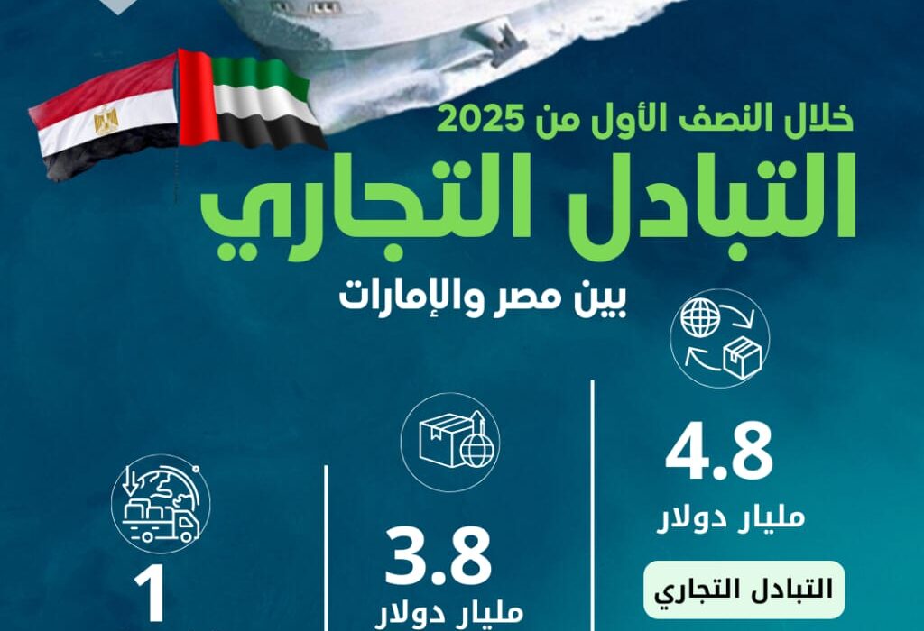 الإحصاء : 153.3 % ارتفاعًا في حجم الصادرات المصرية إلى الإمارات خلال النصف الأول من عام 2025